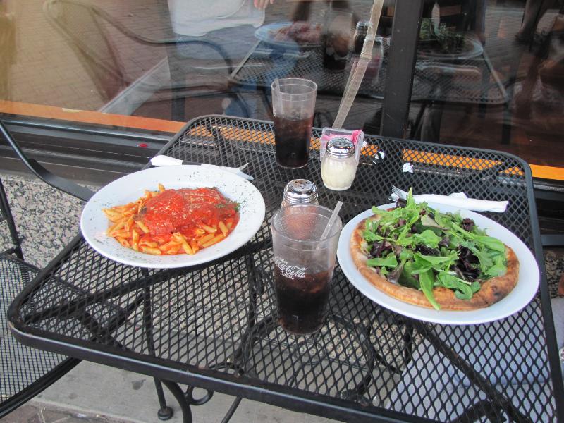 I had the Veal Parmesan on a bed of pasta, and Sher ordered a veggie pizza. The veal was the best I have had in a long time. The veggie pizza was huge. Both of us were stuffed after we were done.