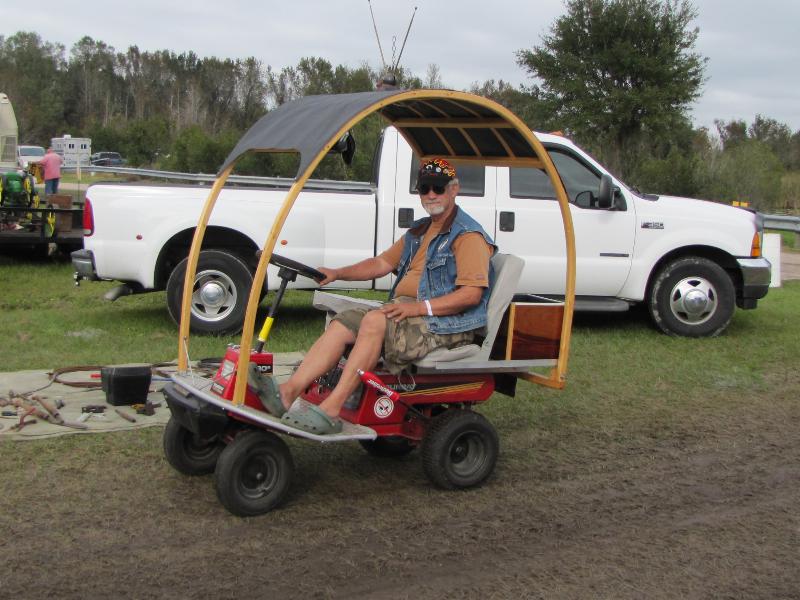 Recently the Florida Flywheelers antique tractor show was held near Ft. Meade, Florida. This huge (240 acres) site was filled with restored antique tractors and over 1500 vendors selling everything imaginable. To get around the grounds most used golf carts. However there were many different, strange, and unique vehicles utilized.