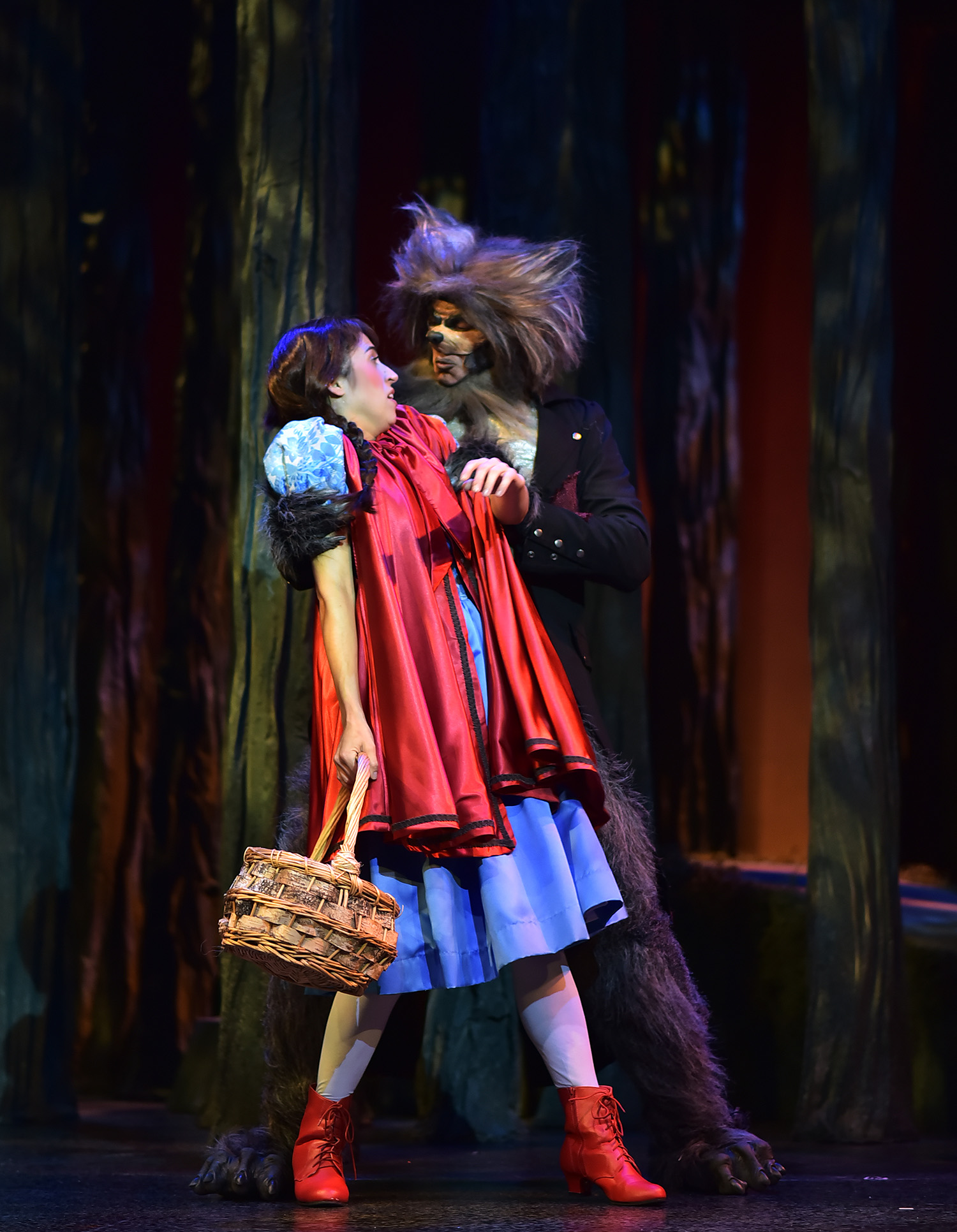 The Wolf (Timothy Ford) encounters Little Red Ridinghood (Jaddy Ciucci) as she journeys to her grandmother’s house. Photo courtesy B&B media