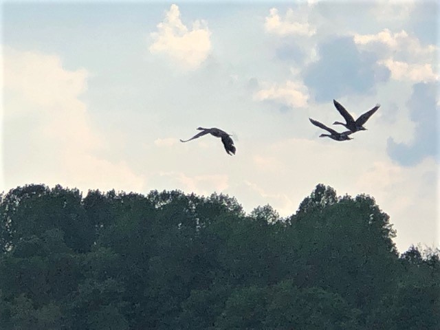 Our site overlooked a grassy area next to the lake. There were tent camping sites right on the lake. The view of the lake was beautiful. Anytime of the day you could see the fish breaking the surface of the water. Canadian geese made themselves know with their calls. In fact, the geese were really interesting as they flew in and out of the lake, squawking all the time. There were so many birds to watch at the park. Big birds, little birds and medium sized birds were everywhere.