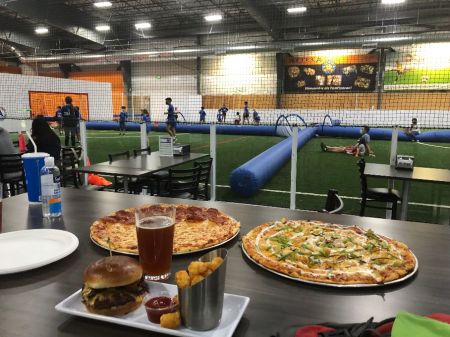Pizzas, burger, tots, soda and beer. Best possible food with which to watch your grandson’s soccer game.