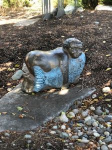 Public art can also be functional. This little “fish boy” has been the scene of who knows how many photos of cute little kids sitting on the boy. You can see the feet of the tall statue in the background.