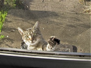 He likes to peer in through the screen in the back door