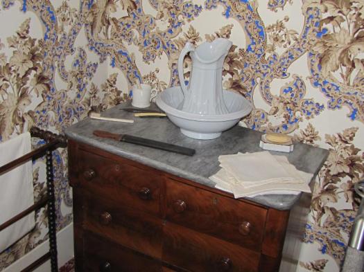 Lincoln’s dresser with wash basin and pitcher and shaving gear.