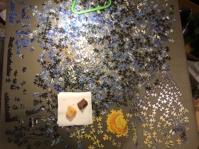 30 thoughts on “Christmas Eve eve puzzle and fudge festivities