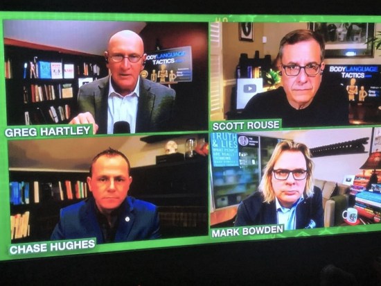 Ever wonder if someone you are talking to is being less than truthful? Have a bad feeling about someone but can’t quite put your finger on it? You ought to take a look at the YouTube videos presented by four fascinating men known as The Behavior Panel. A quote from their YouTube page is the best introduction: “Scott Rouse, Mark Bowden, Chase Hughes, and Greg Hartley are the world’s top body language and behavior experts. Together as The Behavior Panel they analyze body language and human behavior in videos of public interest. They are a non-partisan team, looking to educate and entertain you with their interest and expertise in communication, body language, deception detection, interrogation, and resistance to interrogation.”