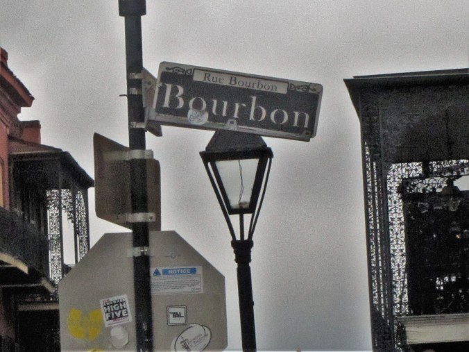 Bourbon Street in New Orleans, known for music, food and revelry. Note the famed balcony iron work in the background