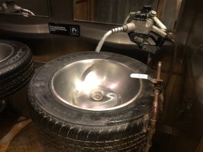 The overall ambiance and décor of the Noblesville establishment, like all of the locations, is based around a 1920’s service station. You have to have cars at a service station, thus you are immediately seeing vintage Ford Model A cars on the outside of the facility.