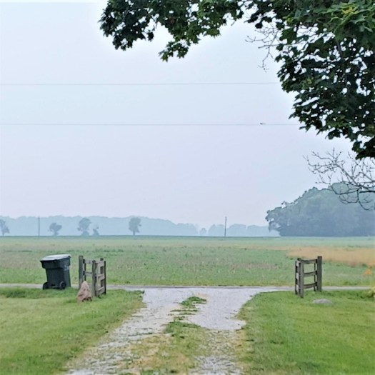 An obvious smoky haze as you look across the fields