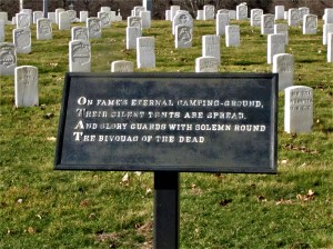 One of two National Cemeteries in Crown Hill Cemetery, Indianapolis, Indiana with 2nd quatrain, 1st stanza of O’Hare’s poem displayed