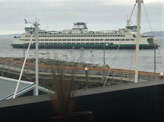 It is fun watching the Edmundson-Kingston Ferry come and go as you eat