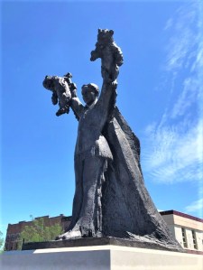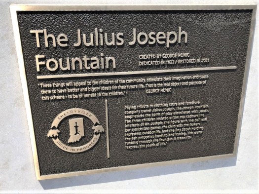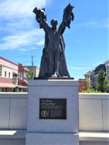 The statue of Balsar holding his pet bear cubs Tom and Jerry was placed in front of an elementary school named for the author. After the school was demolished in the sixties, the statue remained in storage until it was placed on the town square years ago. Once the new downtown project to redo the square was designed, the statue of Balsar and the cubs was restored and placed in the center of the structure housing the fountain and nice seating.