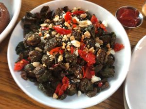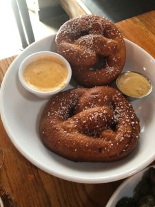 Sher and I and our son got to Sun King about 6 o’clock, checked in on the Craft Pass app, and were seated by Chase, our server. I told Chase that when choosing a beer, I prefer one with a lower number IBU (bitterness rating). Chase checked with the bartender who recommended the Keller Haze IPA. Sher ordered a margarita.
