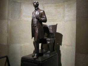 You enter the tomb into a small round room. There were two volunteers in the room answering questions. The tomb itself is reached via a marble lined hall way with different bronze statues of Lincoln along the way.