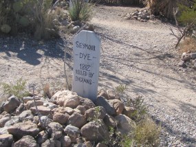 The final resting place of some of Tombstone’s most colorful people is well maintained now. All of the graves look pretty much the same: a pile of rocks and simple wood markers. A few graves have fencing. The entrance to the graveyard is through a souvenir shop. They request a $3 “donation” for a flyer with the grave locations marked.