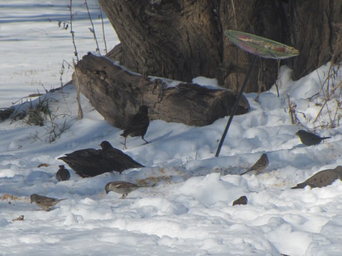 We have quite a bit of snow in central Indiana. These are photos taken in our backyard of some birds.