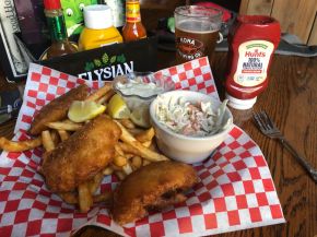 The “bar food” was absolutely delicious. We love good bar food and good beer. Thus it is easy for us to say “We love Snoqualmie Falls Brewery!” The cheese bread, garlic fries and of course the Fish and Chips really hit the spot.