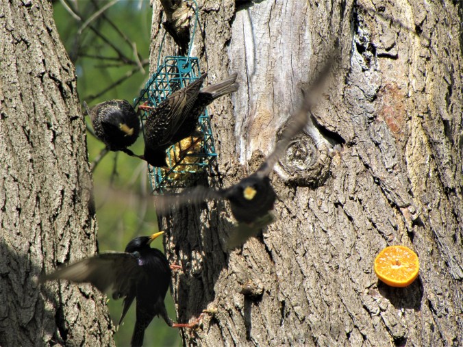 Today was a little wild with all the new young starlings leaving their nests, and their apparent feeding frenzy with the adults.