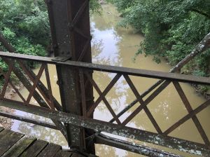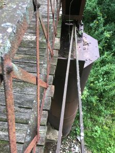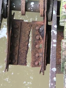 Note the “interlaced” I beam verticals, and the moss growing on the deck boards.