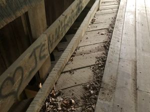 Note the “interlaced” I beam verticals, and the moss growing on the deck boards.