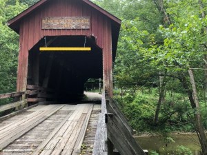 This historic bridge was constructed in 1908 by the Pan-American Bridge Company of New Castle, Indiana, who were very prolific iron bridge constructors in Indiana. The technical design name of this bridge is a single-span, pin-connected Pratt through truss with an “I” beam approach to the south. The bridge rests on metal abutments, wingwalls and round caisson piers.