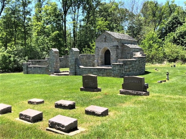 Behind the church on a very hilly plot of ground is the original cemetery. This, the Old St. John’s Cemetery was first used in 1846. This cemetery is officially a Historic Cemetery listed in Indiana’s Cemetery and Burial Grounds Registry of the Department of Natural Resources. At the lower end of the hill and at the end of the cemetery is a beautiful shrine that was installed in gratitude for the safe return of St. John parishioners who served in WWII.