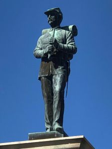 Infantryman on CW monument. Note that vandals have knocked off the musket