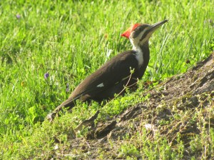 We spotted this female Pileated woodpecker working over a large stump at a cemetery. She worked it for quite a while, and did not take off even when we got much closer. Perhaps she is used to lots of cars and people in the cemetery.
