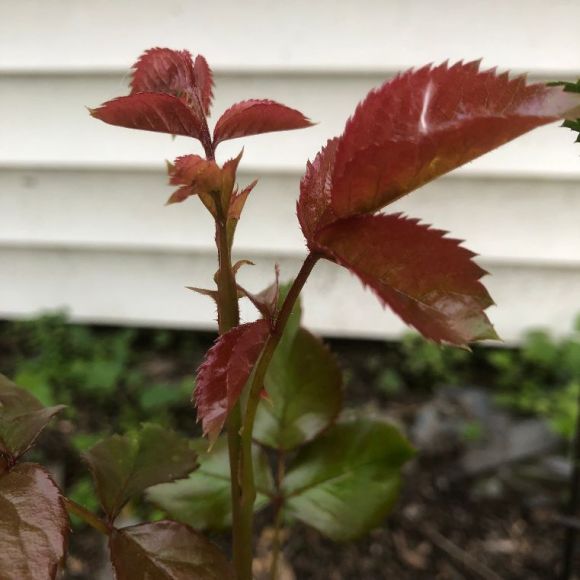 Red young growth on the rose is due to the presence of anthocyanins. This coloration protects the bush from UV rays .