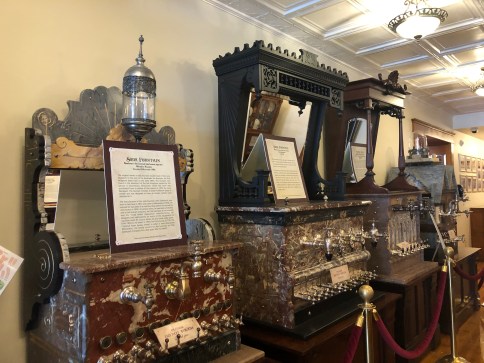 What delicious sundaes we enjoyed! The butter pecan ice cream was the best I have ever tasted, and Sher agreed. The hot fudge was hot, not like some places. There was also a ton of the hot fudge, as it completely covered the bottom and sides of our dishes. This ice cream parlor was founded in 1900. The place is really an ice cream museum. There are many old soda fountains and several cases filled with the old flavor jars. In addition, there are several old mechanical “orchestra” machines.