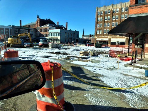 The pictured trench digging machine was in use during working hours. The dolomitic rock was not exceptionally hard, so no jack hammering was required, but this trenching machine really was loud and shook the ground if you were within about 40 feet or so. I did enjoy watching this machine operate.