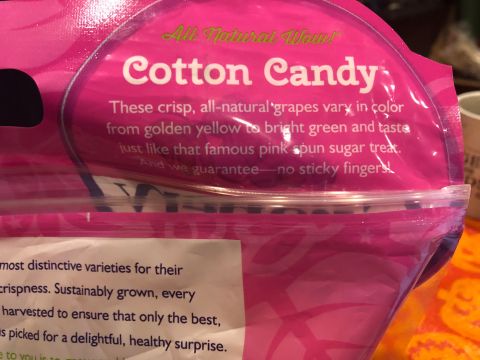 We thought the name on the bag of grapes was a cute company name: Cotton Candy. But no, that was the name and flavor of the grapes themselves. Welcome to the wonderful world of designer fruit.