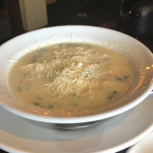 We timed our trip to arrive at the restaurant at 2:30 PM, which made us eligible for the all you can eat soup, salad and breadstick lunch deal. (offered M-F 11 to 3 for just $7.99 per person). Sher enjoyed a frozen strawberry margarita while I chose the peach iced tea. Delicious! We certainly took advantage of this deal: I had 2 1/2 bowls of soup with salad and breadsticks. We brought home some salad and breadsticks.