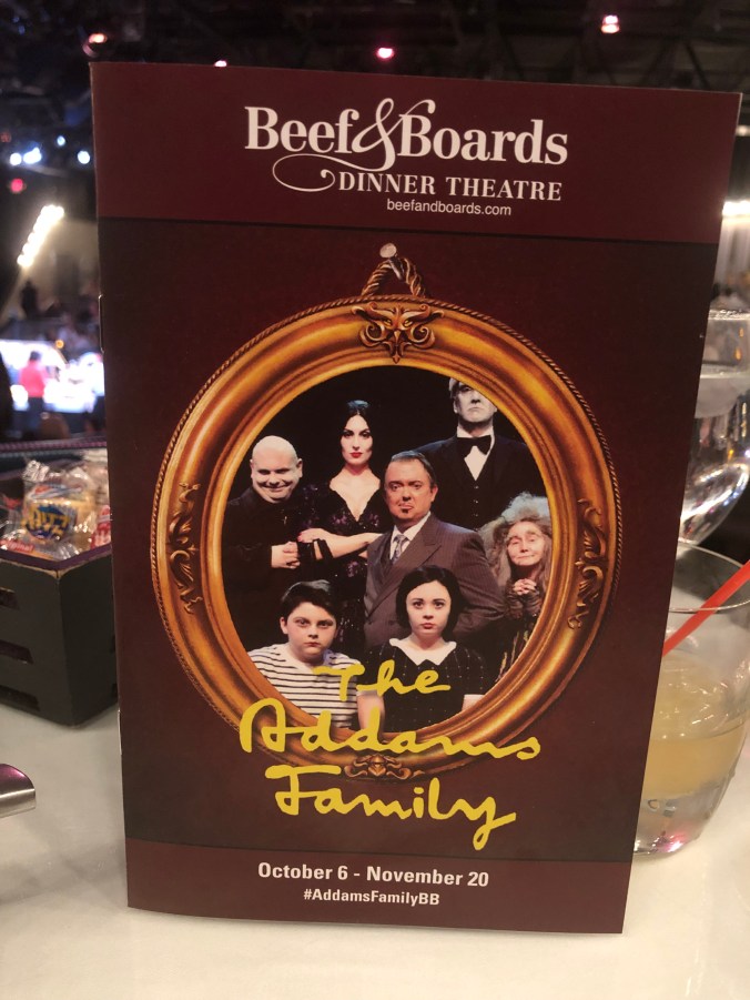 Indy’s Beef & Boards Dinner Theatre has published a general invitation to “meet The Addams Family” during October and most of November this year. We took them up on that invitation, and thoroughly enjoyed the performance Saturday night.