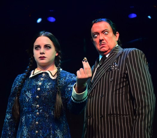 Shelbi Berry plays Wednesday Addams, while Ray Gleaves plays her “normal” boyfriend Lucas. John Vessels and Sarah Hund play Mal and Alice Beineke, the ridiculously normal parents of Lucas. Mal and Alice have a hard time adjusting to the Addams macabre way of like, their house in a Park in New York, and just about anything Addams!