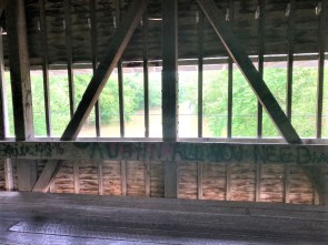 A Monroe County, Indiana engineer named Jim Barker got ahold of the useable parts and incorporated them into the design of the fully authentic covered bridge. According to Bridge Hunter website the bridge was reconstructed at “the site of the Millikan/Milligan/McMillan/Williams Covered Bridge that was destroyed by an arson fire in 1976. Remnants of the original abutments of that bridge can be seen just West of the current bridge. Although that bridge wasn’t a Kennedy built span, there were at least two of them that once existed in Monroe County.”