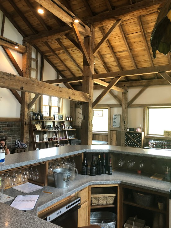 Coming off of Whiteland Road you pass through perfectly manicured grape arbors. When you reach the tasting room you are immediately impressed with the barn structure. The original hand hewed timbers were salvaged from and repurposed from the 1824 barn.