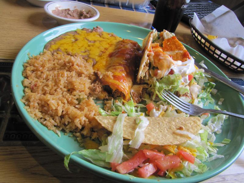 Pick three combo, 2 burros, 1 soft taco, beans & rice
