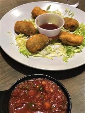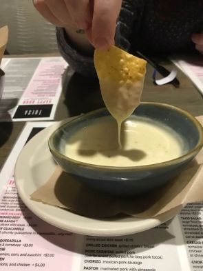 A wildly colorful decor and Latin music is seen and heard throughout the restaurant. We were seated quickly, even thou the place was packed. We were served the usual chips and dip, ordered and received drinks. Fancy, delicious and even lighted drinks added to the festive atmosphere of our table of nine.