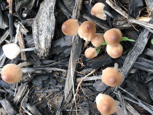 Our two tomato plants have done quite nicely the past month, giving us, as you can see, some nice fruits. The backyard also was fertile ground, it seems, for quite a few mushrooms that showed up overnight.