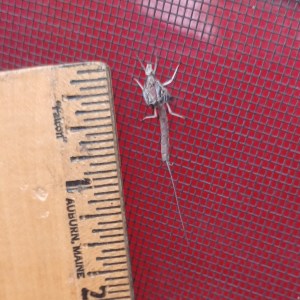 Mayflies have an interesting life cycle that includes molting. We spotted this insect a couple of days ago and his molted shell showed up this morning. There is lots of good information on these insects on the web. Hit up “life cycle of mayflies” on a search.
