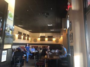 Sher and I and our son got to Sun King about 6 o’clock, checked in on the Craft Pass app, and were seated by Chase, our server. I told Chase that when choosing a beer, I prefer one with a lower number IBU (bitterness rating). Chase checked with the bartender who recommended the Keller Haze IPA. Sher ordered a margarita.