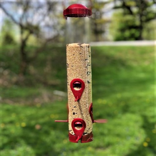 When we got the squirrel corn the other day we also bought a bird feeder. So far we have not actually seen any feathered friends at the feeder, but the drop in the seed level and loose seeds on the ground under the feeder do show that it has been used.