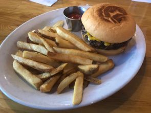 We certainly enjoyed our lunch today. Sher had the Roasted Veggie Sandwich, stuffed with farm fresh veggies and topped with a bun sized mushroom. I enjoyed the 8 ounce BBQ burger with jack cheddar, onions and pickles and house made BBQ Sauce. Both came with hand cut fries.