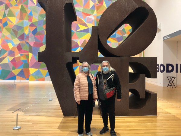 Robert Indiana was born in 1928 as Robert Clark. He changed his name to Indiana in 1958 to show his roots in the Midwest. His first widespread use of the stacked four letters of “LOVE” was a Christmas card in 1964 for the New York Museum of Modern Art. This design creation led to the LOVE sculpture constructed of Cor-ten steel in 1970. LOVE in steel was first put on display at the Indianapolis Museum of Art. It made the rounds of several American cities for five years until it returned to the IMA. After needed restoration was performed due to weathering of the steel, it is now displayed inside the museum building to protect it from the elements.