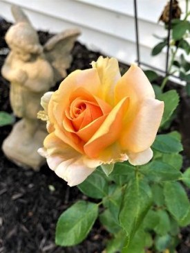 This rose bud is blooming on one of the rose bushes that we planted in our herb and flower garden during our COVID-19 isolation this spring/summer. This new bush has given us several pretty bloom events this summer.