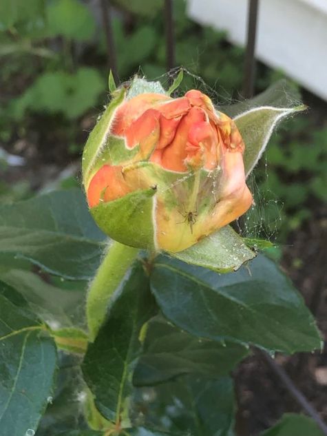 Here’s another bud with a rose on the way. The rose bush is still producing flowers.