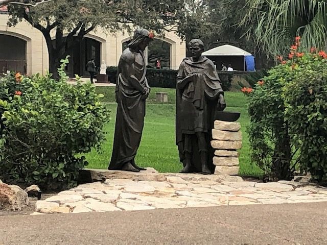 We met our son and grandson at our campsite. (Our son had made the reservation and invited us to join him for the weekend.) The RV park was clean and very well maintained. Our site was a pull through with an asphalt pad on a slight incline. We had a concrete pad for the picnic table, and a fire ring with a flip grill. Our son and grandson pitched a tent in the grass next to our RV. The shore power box was new with all three services.