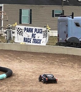 Entrance to the RV park, lake in the background