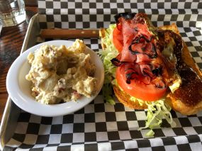 Delicious fare: Burger & fries, Fish & Chips, Mac & Cheese, Potato skins, Loaded Jalapenos and Pretzel bites with beer cheese